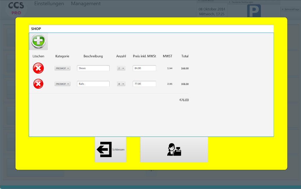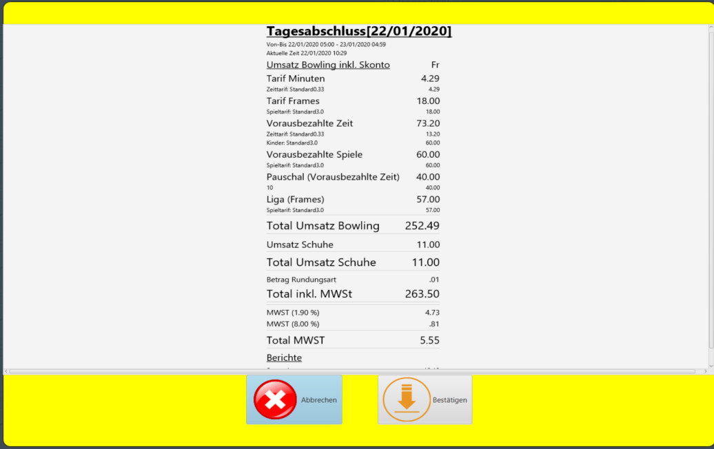 Verschiedene MWSt Sätze für Bowling / Proshop / Schuhe / Kreditkartengebühr.