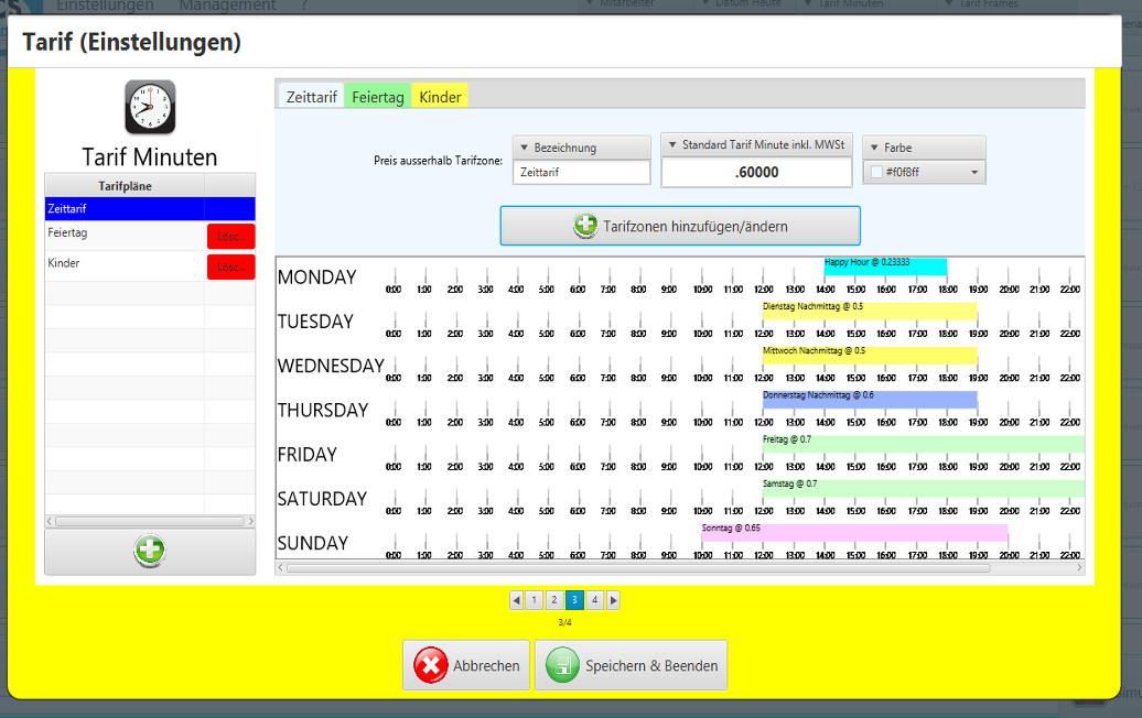 Verschiedene Tarifwochenpläne mit unterschiedlichen Tarifzonen.