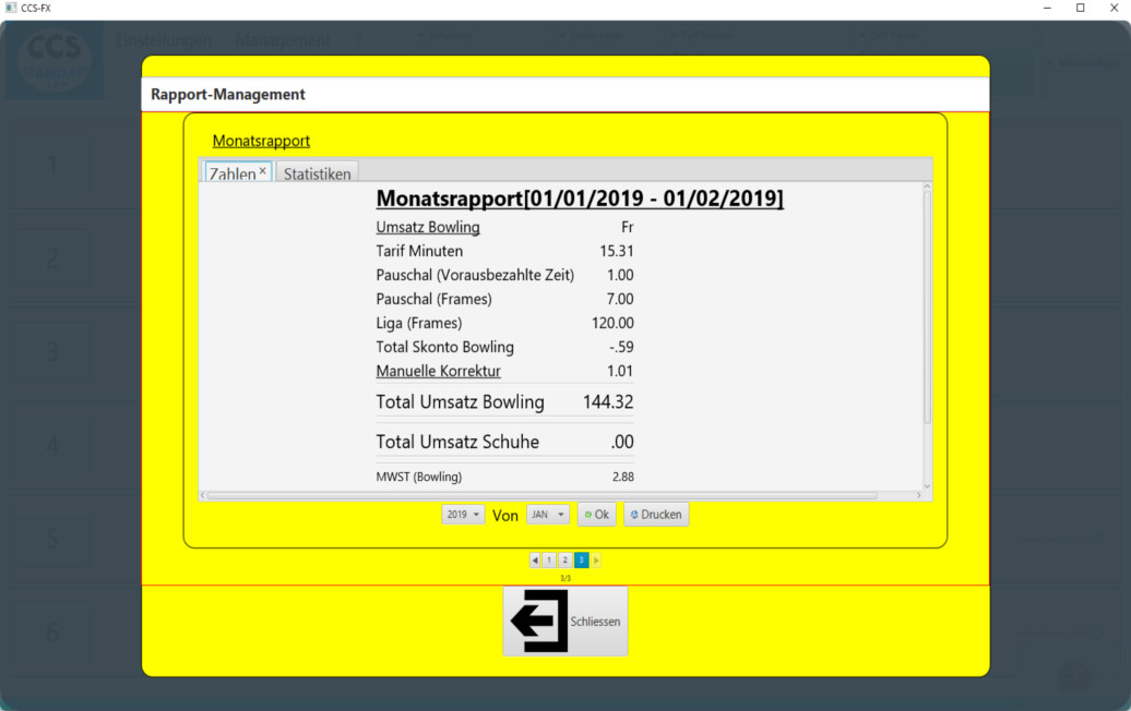 Centralized management system for the management and control of all bowling lanes. Various billing methods and very detailed summaries of the daily reports
