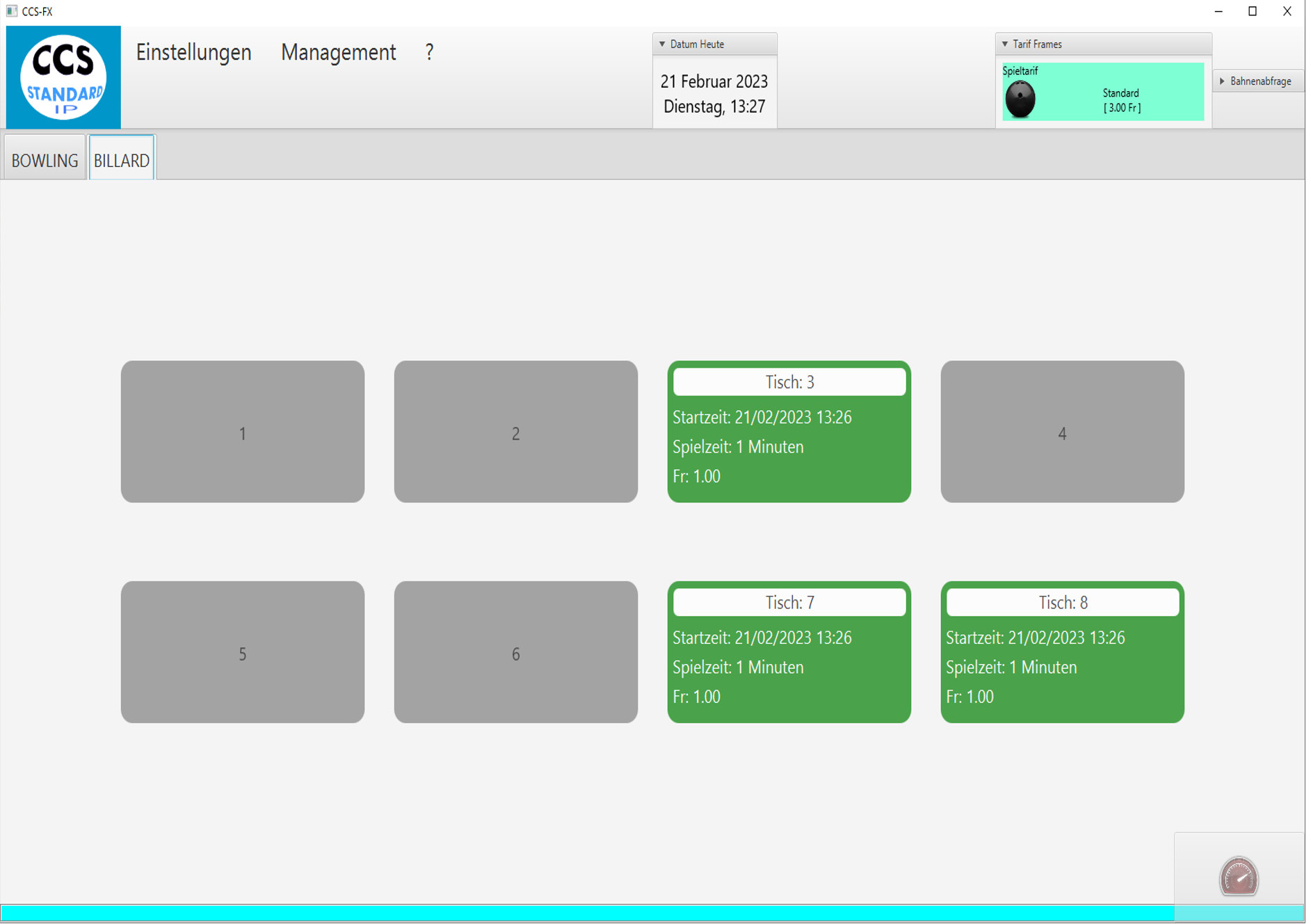 NOUVEAU : gestionnaire de facturation intégré pour les tables de billard. Différents fuseaux horaires définissables.
