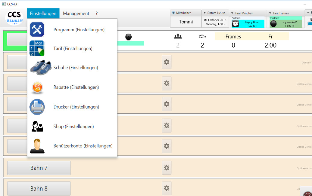 Système de gestion centralisé pour la gestion et le contrôle de toutes les pistes de bowling. Diverses méthodes de facturation et des résumés très détaillés des rapports quotidiens